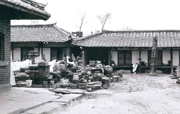1950~1953년 사이 6·25 한국전쟁이 한창인 당시의 한옥 기와집과 양옥집의 풍경을 엿볼 수 있는 소중한 사진이다. 당시의 시대상에서는 보기 드물게 전통 한옥 집 형태를 간직한 채 벽과 지붕을 개량했고, 현대식 건축기법인 벽돌로 쌓은 양옥집의 모습이 이채롭다. 마당에 있는 장독대의 질그릇과 옹기, 굴뚝 등은 종전의 모습 그대로인 듯하다. 집 앞에 서 있거나 허리를 구부리고 무언가를 정리하는 아낙네의 흰색 저고리와 검정색 치마를 입은 당시 모습에서 여성들의 옛 복장모습을 엿볼 수 있다.