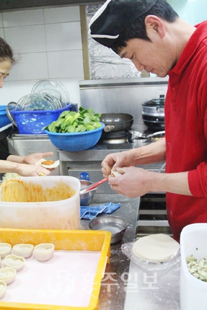 새벽 6시면 하루 일과를 시작하는 김 대표는 만두전골과 함께 먹는 고추다대기와 칼국수 반죽까지 직접 하고는 한다. 성심손만두의 인기 메뉴는 만두전골이다. 성심손만두의 만두전골은 야채와 고기, 만두를 넣고 끓이다가 고기와 야채를 먼저 간장 소스에 찍어 먹는다. 만두가 익으면 불을 끄고 면 사리를 넣어 먹는다. 특히 주부들에게는 포장으로 인기다. “만두 가게를 오픈한 지 얼마 안 돼 셋째가 태어났는데 우리 셋째가 복덩이인 것 같다. 우리 아이들이 먹는다고 생각해 재료 하나하나 모두 신경 써서 만든다.”