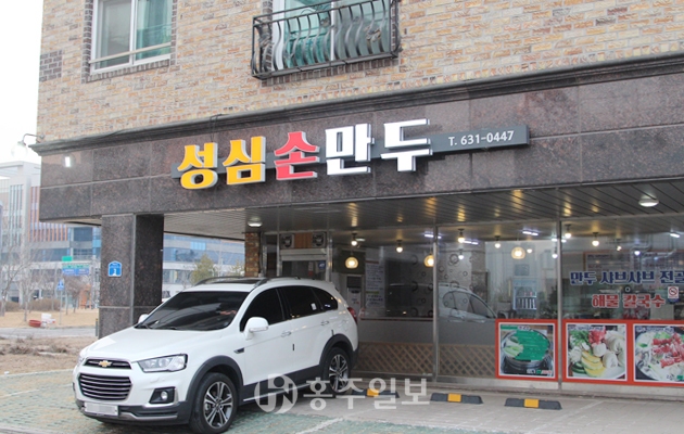지난 2017년 문을 연 내포신도시 소재 성심손만두의 만두는 갖은 야채의 아삭한 식감과 고기 잡내가 전혀 나지 않는다는 것이 큰 특징이다. 옛 홍성여고 사거리에서 짬뽕과 돈가스를 판매하던 김우진 대표는 메뉴 전환을 검토하면서 이런저런 고민이 많았다. “만두가 손이 많이 가는 음식이라 고민이 많았다. 한 번 어딘가에 꽂히면 파고드는 성격이라 꾸준하게 최고의 만두를 만들기 위해 노력했는데 다행히 손님들이 그 맛을 알아주는 것 같다.”