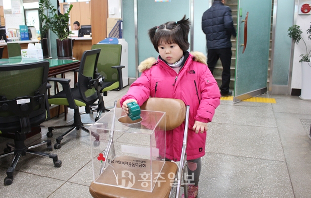지난 17일 홍북읍행정복지센터에는 홍북어린이집 원아 75명이 방문했다. 이들은 지난 한 달여 동안 모은 돼지저금통을 전달해 주변을 훈훈하게 만들고 있다. 특히 원아들에게 나눠준 돼지저금통은 강환숙 원장이 직접 편지를 써 가정마다 이웃사랑을 환기시키기도 했다. 이번 행사는 지난 5년 여 동안 치러온 행사로 전체 어린이집 원아 77명중 75명이 모금했다.