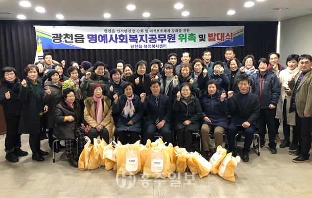 광천읍은 지역사회보장협의체 26명, Feel-樂 시니어봉사단 28명, 새마을부녀회장 15명 등 총 69명을 위촉했다. 서부면은 새마을부녀회, 마을이장, 독거노인생활관리사, 적십자협의회장 등 총 62명의 명예사회복지공무원을 위촉하고 명예사회복지공무원의 역할과 활동 시 유의점 등에 대한 소양교육을 실시하는 등 복지안전망 구축에 노력할 것을 다짐했다.