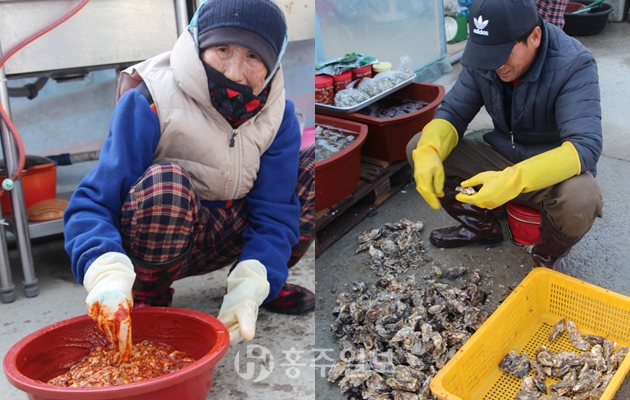 굴을 판매하고 있는 한 주민은 “바다 속을 내 어찌 알겠는가. 올해는 어딜 가도 물량이 적다고 한다. 천수만이나 보령에서 굴을 가지고 오거나 요 앞 뻘에서 자연산 굴을 캐서 팔기도 한다”고 말한다.