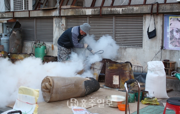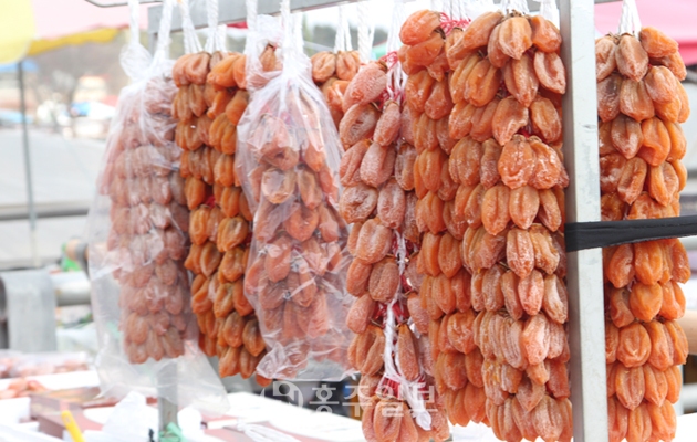 명절에 과일 또한 빠질 수 없다. 명절만 되면 사과. 배 등의 가격이 상승하기도 하지만 올해는 곶감이 풍년이다. 노점상에 끈으로 매달린 곶감이 먹음직스럽다. 매서운 겨울바람을 피하는 상인들의 노하우는 연탄난로다. 양동이에 물을 받아 뜨거운 물을 데워 사용하기도 하고 손을 녹이는데 그만이다. 먹고 살려고 장사를 하는 것이니 아무리 바빠도 밥은 먹어야 한다. 뜨끈한 국밥 한 그릇 시켜 호호 불어가며 먹으면 이보다 더 좋을 수 없다. 설 명절에 빠질 수 없는 것이 가래떡이다. 하얀 자태를 뽐내며 나오는 말랑말랑한 가래떡을 꿀에 찍어 먹으면 최고다. 시장에는 이미 만들어 놓은 만두도 판매하고 있다. 굳이 집에서 만들기 어렵다면 시장에서 떡과 만두를 사다가 끓이기만 하면 되니 세상 참 편해졌다는 말이 나올만하다.