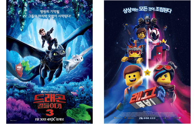 아이들과 함께 볼 수 있는 애니매이션도 개봉한다. ‘드래곤 길들이기3’는 30일에, ‘레고무비2’는 다음달 6일에 개봉한다. ‘드래곤 길들이기3’는 영원한 친구 히컵과 투슬리스의 활약으로 사람과 드래곤이 공존하며 평화롭게 살아가는 버크섬에서 새로운 드래곤 라이트 퓨어리를 쫓아간 투슬리스를 찾다가 히컵은 누구도 찾지 못했던 드래곤의 파라다이스 히든월드를 우연히 발견한다. 하지만 평화도 잠시, 역대 최악의 드래곤 헌터 그리멜의 등장으로 드래곤들의 안전과 버크섬의 평화까지 위협받기 시작하면서 흥미진진한 이야기가 펼쳐진다. ‘레고무비2’는 외계인들에게 납치된 친구들을 구하러 우주로의 여행을 시작하는 에밋과 친구들의 모험을 그린다.
