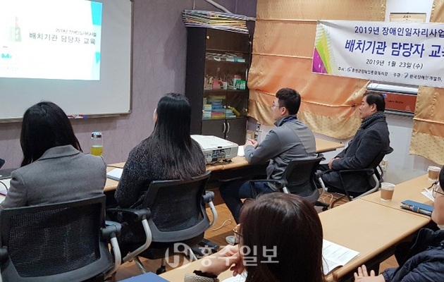 홍성군장애인종합복지관(관장 복천규)은 지난 23일 2019 장애인일자리사업 배치기관 담당자를 대상으로 장애인일자리사업 안내 및 복무규정안내, 직장 내 장애인식개선교육을 진행했다.<사진>
