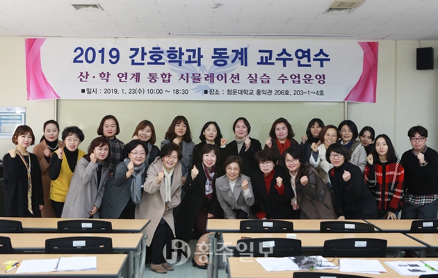 청운대학교(총장 이우종) 간호학과는 지난 23일 홍익관에서 가톨릭대학교 서울성모병원, 인천광역시의료원, 충청남도 서산의료원, 홍성의료원 등 협력 병원 간호과장 20여명이 참석한 가운데 산·학 연계 통합 시뮬레이션 교수연수를 개최했다.<사진>