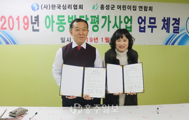 홍성군어린이집연합회(회장 홍은유)와 (사)한국심리협회가 지난 25일 업무협약을 체결하고 영유아의 발달지체 예방을 위해 어린이집 이용 아동의 발달검사를 지원한다.<사진>
