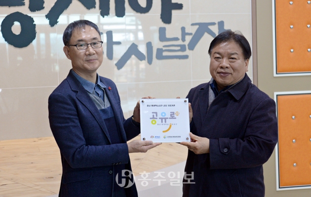 예산황새공원이 지난 23일 도내 학습공간 공유사업인 ‘공유로(路)’ 기관으로 지정돼 현판식을 가졌다.