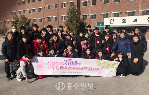 홍성군청소년자원봉사단 청로회(회장 이철이) 학생들은 지난 10일부터 13일 3박4일 동안 가평에 위치한 가평꽃동네 봉사활동을 진행했다.<사진> 이날은 홍주고등학교, 홍성고등학교, 홍성여자고등학교, 갈산고등학교 등 4개의 학교 학생들이 봉사를 했다.