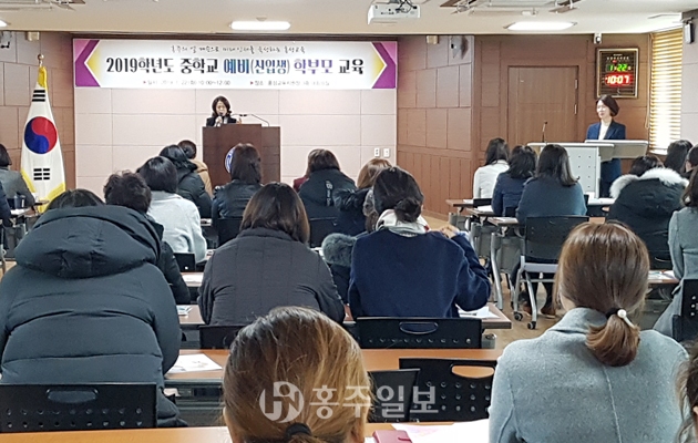 홍성교육지원청(교육장 우길동)은 2019학년도 중학교 예비(신입생) 학부모교육을 지난 22일 학부모 70명을 대상으로 대회의실에서 교육을 실시했다.<사진>
