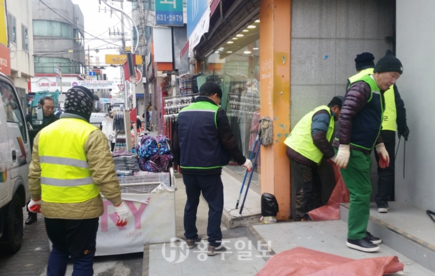 명동상가 상인회와 홍성읍행정복지센터 직원 등이 지난달 31일 설 명절을 맞아 명동상가를 방문하는 이용객에게 쾌적하고 깨끗한 환경을 제공하기 위한 설맞이 대청소를 실시했다.<사진>