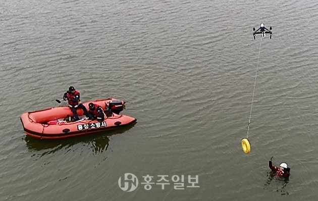 홍성소방서(서장 송원규)는 지난달 31일 장곡저수지에서 소방드론을 활용한 구조훈련을 실시했다. 이번 훈련은 소방서에서 운용 중인 소방드론의 활용범위를 확대해 구조 현장에서의 활용능력을 검증하고 구조를 최우선으로 하는 대응을 위해 마련됐다.