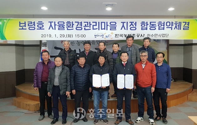 한국농어촌공사 천수만사업단(단장 민흥기)은 지난 29일 사업단 회의실에서 보령호 인근 12곳의 마을과 보령호 자율환경관리마을 지정을 위한 협약을 체결했다.<사진>