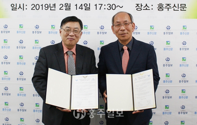(주)홍주일보사·홍주신문이 청운대학교 사회서비스대학과 평생학습 중심대학 공동협력을 위한 업무협약식이 지난 14일 본지 사무실에서 개최됐다.<사진>