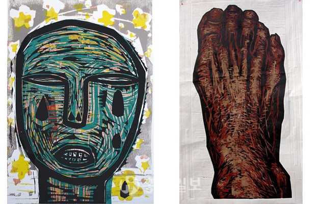 이후 2000년대 초반 무렵 한 전시장에 갔다가 한 작가의 판화작품 앞에서 전율을 느꼈다. 이윤엽 작가의 ‘땅’이었다. 2003년에 제작된 150*30의 초대형 크기의 판화작품으로 땅을 딛고 사는 우리네 민중들의 거친 발의 모습이 판화로 새겨진 작품이다. 조각도의 거친 질감과 함께 민중들의 힘든 인생살이, 더불어 민중들의 힘이 동시에 느껴지는 작품이었다.