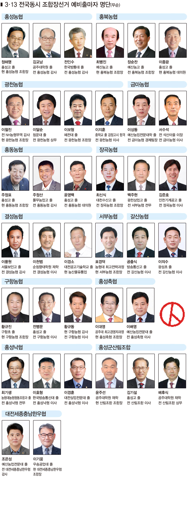 3·13 전국동시 조합장선거 예비출마자 명단(무순)