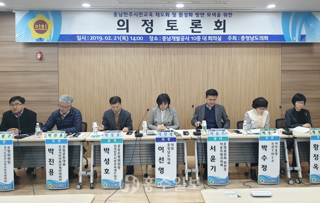 충남도의회는 지난 21일 충남개발공사 대회의실에서 이선영 의원(비례)의 요청으로 ‘충남민주시민교육 제도화 및 활성화 방안 모색’에 관한 의정토론회를 개최했다.<사진> 이날 토론회에서 좌장을 맡은 이선영 의원은 “지방자치가 강화되려면 민주시민교육 활성화를 통해 생활민주주의와 생활정치가 자리매김 해야 한다”고 말했다.