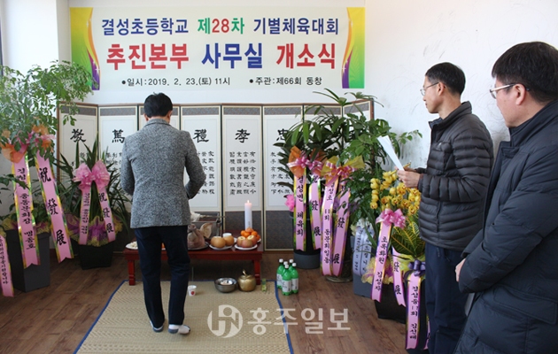 사무실 개소에는 많은 동문들이 참석했으며, 결성농협 홍성균 조합장을 비롯해 결성면체육진흥회 방정복 회장, 김주환 자율방범대장 등이 참석했다. 이들은 마련된 고사상에 절을 올리고 기별체육대회 추진본부 개소식을 마쳤다.