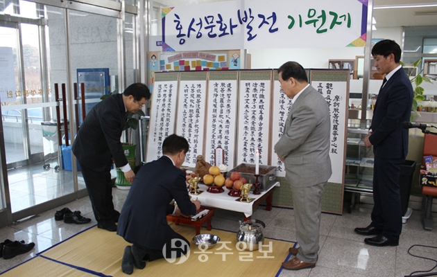 한편 이날 총회에서는 문화원 발전에 공헌한 강종식 이사와 박재월 이사가 공로패를 받았고 충남도 이종화 부의장, 박천금, 한경분 회원이 감사패를 받았다. 정기총회 직후 ‘홍성문화 발전 기원제’<사진>를 올리며 회원들과 함께 식사의 자리를 마련했다.