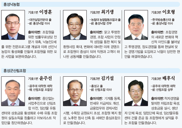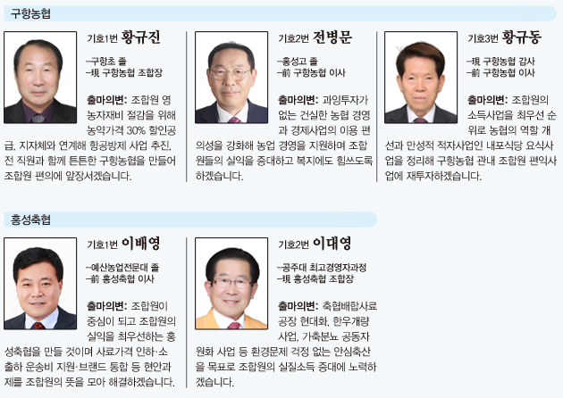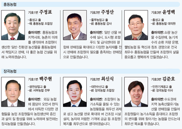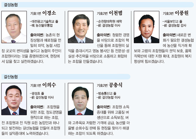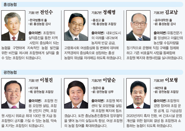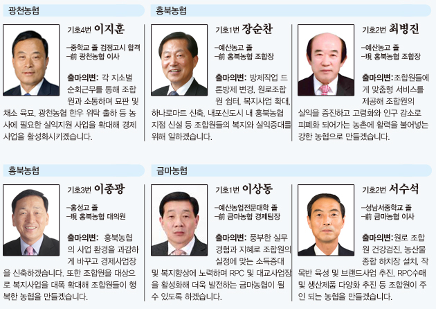 3월 13일 치뤄지는 조합장 선거 후보등록을 마친 후보자들이 표심을 향해 지지를 호소하고 있다.‘과연 누구를 선택하는 것이 최선의 선택일까?’능력과 도덕성 등 유권자인 조합원들의 감시와 눈길이 쏠리고 있는 가운데 지역의 밝은 미래를 이끌어 갈 조합장 후보자들의 출사표를 듣는다. <편집자 주>
