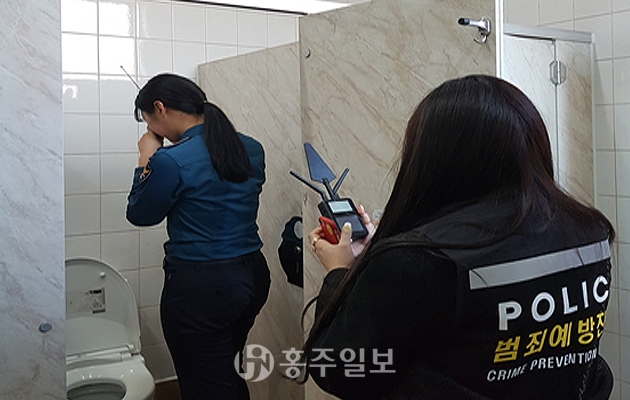 홍성경찰서(서장 김재선)는 불법촬영카메라를 이용한 성범죄 근절과 시민들의 심리적 불안감 해소 및 성범죄 예방을 위해 지난달 26일 새학기를 맞아 관내에 있는 청운대학교에 민경 합동으로 불법촬영카메라 점검을 실시했다.