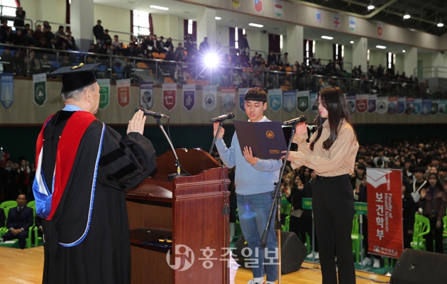 한서대학교(총장 함기선) 2019학년도 입학식이 지난달 28일 신입생 1676명과 학부형, 함기선 총장을 비롯한 교직원과 재학생 등 3000여명이 참석한 가운데 영암체육관에서 열렸다.<사진>