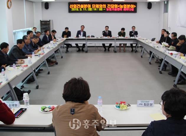 이번 간담회에는 홍성군품목연구연합회, 농촌지도자회, (사)한국농업경영인 홍성군연합회, (사)한국여성농업인 홍성군연합회, (사)한국쌀전업농 홍성군지부, 홍성군친환경농업인연합회와 홍성군청 농수산과, 홍성군농업기술센터 등이 참석했다. 이번 간담회에서는 농촌현장의 부족한 인력을 보충하기 위한 인력지원센터와 농기계 구입 시 농민들에 대한 지원금 확대 등이 중점적으로 논의됐다.