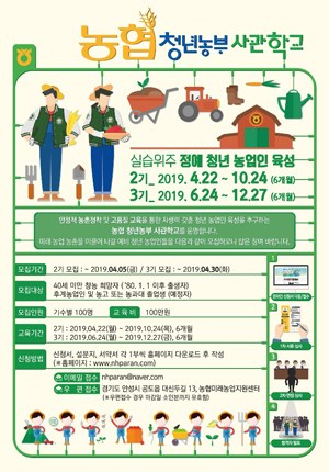 농협충남지역본부(본부장 조소행)는 지속가능한 농업 환경을 유지하기 위한 농협 청년농부 사관학교 제2기 교육생을 본격 모집한다고 밝혔다.<사진>