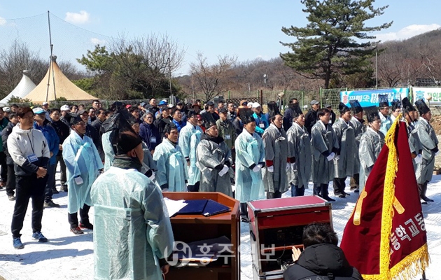 재인천홍성고등학교 동문회(회장 엄기항, 수석부회장 김세태, 사무국장 권오경)가 지난달 24일 회원 150여 명이 참여한 가운데 인천 소래산에서 기해년 무사산행을 기원하는 시산제를 올렸다. 회원들은 시산제에서 무산산행과 가정의 안녕을 기원했다.