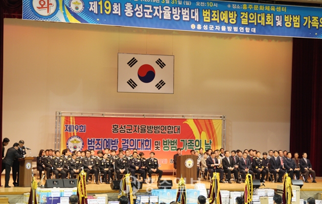 제19회 홍성군자율방범대(대장 엄태종) 범죄예방 결의대회 및 방범가족의 날이 지난달 31일 홍주문화체육센터에서 개최됐다.<사진>