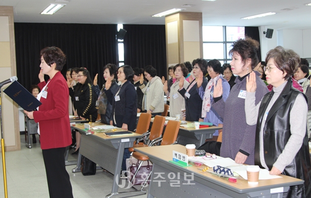 제13기 홍성농협 주부대학(대학장 정해명, 부학장 서정훈) 개강식이 지난달 27일 홍성농협 대회의실에서 개최됐다.<사진>