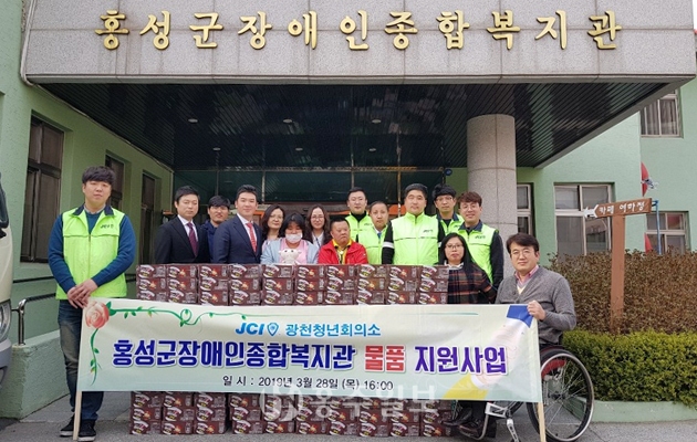 광천청년회의소(회장 이대한)가 지난달 28일 컵라면 200상자를 홍성군장애인종합복지관(관장 복천규)에 전달했다. 이대한 회장은 “상대적으로 소외된 계층에게 미약하게나마 도움이 되고자 하는 마음으로 나눔을 실천하게 됐다”고 말했다.