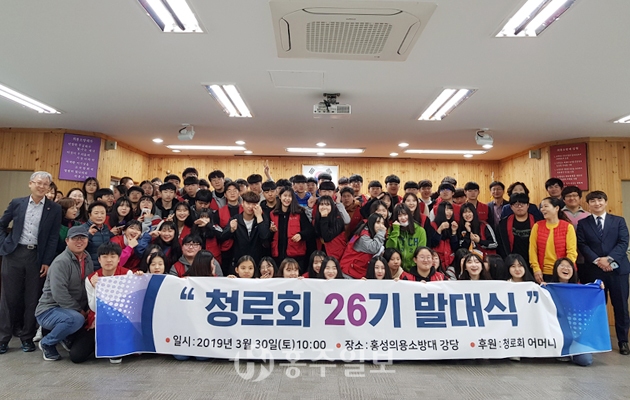 홍성군청소년자원봉사단 청로회(회장 이철이) 학생들이 지난달 30일 (구)소방서에서 청로회 발대식을 진행했다.<사진>