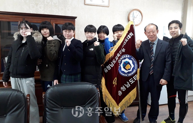 홍주고등학교(교장 이상헌) 태권도부는 지난달 22~25일까지 보령시 종합체육관에서 열린 제30회 충남 교육감기 태권도 대회 겸 2019년 충남 대표선발 예선대회에서 단체전 종합 우승을 차지했다.<사진>