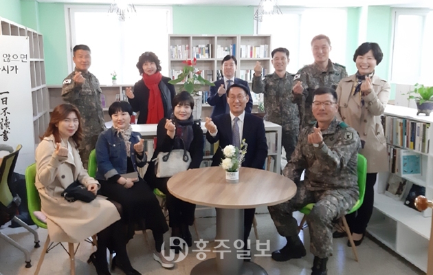 홍성군 주둔 부대인 육군32사단 1789부대 4대대(대대장 김출현)는 지난 3일 장병들의 편안한 휴식 공간 및 독서를 위한 번영 도서관 북카페 개관식을 가졌다.<사진>