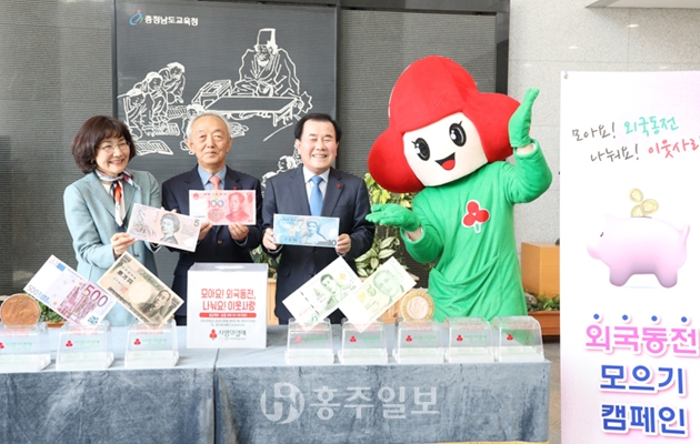 충청남도교육청(교육감 김지철)이 대전일보사와 충남사회복지공동모금회가 주관하는 ‘모아요! 외국잔돈, 나눠요! 이웃사랑’ 외화잔돈 모으기 캠페인에 동참했다.<사진>