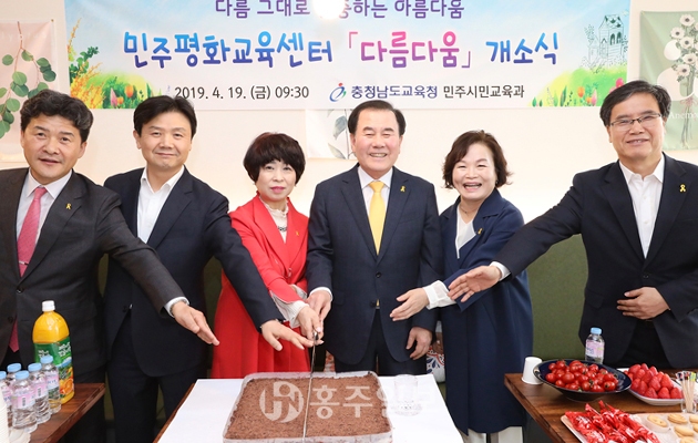 충남도교육청(교육감 김지철)은 지난 19일 4·19혁명 59주년을 맞아 학생 인권교육, 민주시민교육, 평화통일교육 전담기구인 민주평화교육센터 개소식을 가졌다.<사진>