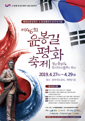 ‘제46회 윤봉길평화축제’가 오는 27일부터 29일까지 덕산 충의사 일원에서 열린다. 윤봉길평화축제는 윤봉길 의사를 테마로 한 역사인물형 축제로, 4·29 상해 의거 87주년을 기념하는 동시에 윤 의사의 독립 활동은 물론 농촌계몽운동과 문인활동 등 다양한 업적을 재조명하는 다채로운 프로그램으로 진행된다.