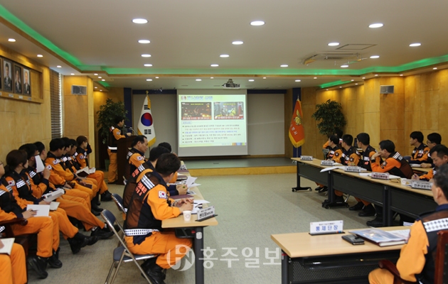 홍성소방서(서장 송원규)는 지난 19일 대회의실에서 긴급구조통제단 지휘관과 통제단원의 의사결정능력을 높이기 위한 훈련을 실시했다.<사진>