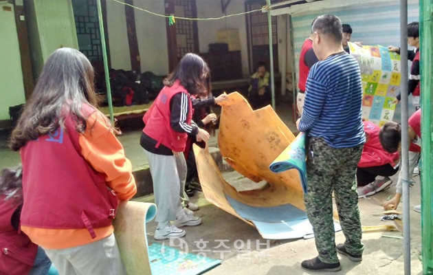 홍성군청소년자원봉사단 청로회(회장 이철이)는 지난 21일 홍성에 있는 독거노인의 집에 방문해 봉사활동을 실시했다.<사진>