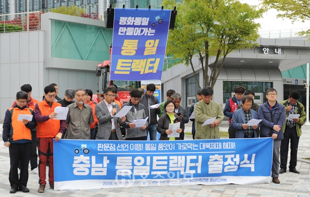 정효진 전농충남도연맹 의장은 “각지역에 준비한 트랙터를 몰고 서울을 경유해 27일에 파주에 1차 집결 후 임진각으로 이동하여 전국농민대회 및 평화인간띠잇기 행사에도 참여할 계획이며, 분단의 선, 제재의 선을 넘어 북의 농민들과 교류하는게 목표인데, 미국의 제재 때문에 지금 당장은 임진각에 그대로 멈춰서 있겠지만, 우리민족끼리 자주적인 평화통일의 길을 만들자는 정부의 통일원칙에 따라, 농민들이 할 수 있는 일들은 그대로 진행하겠다”며 출정식의 취지와 의지를 밝혔다.