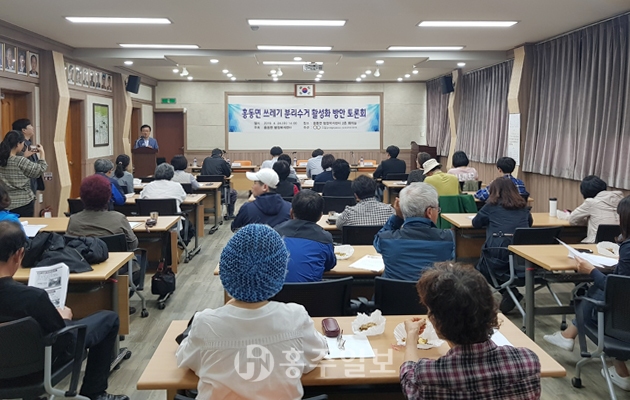 홍동면(면장 조성을)은 지난달 24일 마을주민과 환경 전문가, 환경과 담당자 등 50여 명이 참석한 가운데 홍동면의 ‘쓰레기 분리수거 활성화 방안’을 모색하는 토론회를 개최했다.<사진>