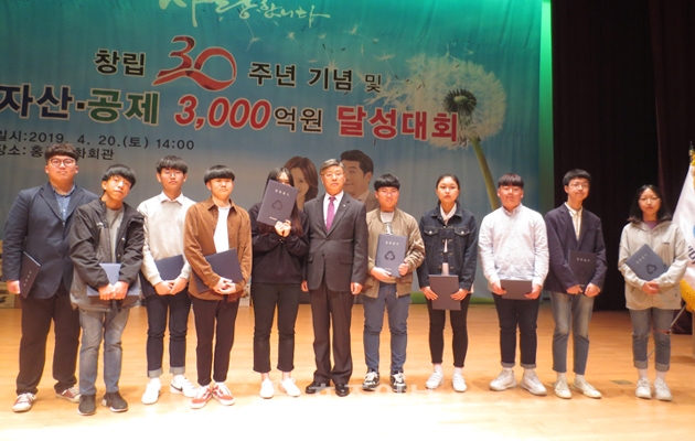 MG홍주새마을금고(이사장 오세승)는 지난달 20일 홍주문화회관에서 회원 700여 명이 참석한 가운데 ‘창립 30주년 기념식 및 자산·공제 3000억 원 달성대회’를 개최했다. 이날 홍주새마을금고는 홍성사랑장학금 500만 원을 기탁하고, 11명의 모범학생들에게 장학금을 전달했다.