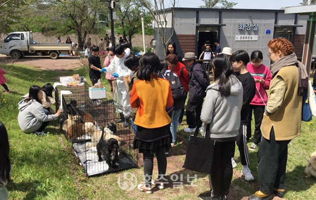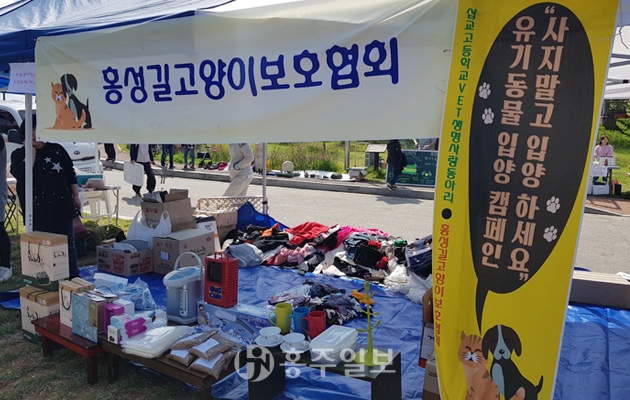 홍성길고양이보호협회(대표 임소영·임자영)는 지난달 27일 홍동면 애향공원에서 열린 ‘봄맞이 큰 장터’에 참여해 길고양이 치료비 마련을 위한 물품판매와 함께 보호소에서 안락사를 기다리고 있는 개들을 입양보내는 행사를 실시했다. 이날 입양대상 유기견 11마리 중 5마리에게 새 가족을 찾아줬다.