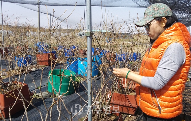 이제 날이 풀리고 본격적으로 농사 준비에 한창이다. 블루베리 묘목 앞에서 하얀색 꽃이 피기를 기다리며 수줍게 미소를 짓고 있다. 앞으로 고단한 농사일이 시작될 것이다. 하지만 마음은 고단하지 않다. 자신을 위한 선물을 기다리기에 오늘 하루도 힘차게 살아간다.