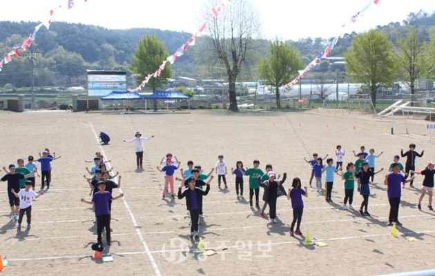 서부초등학교(교장 김선수)는 지난 3일 어린이날을 비롯한 연휴를 앞두고 다문화 가정이 모두 함께 즐길 수 있는 봄 운동회, ‘I. 신나. U. 놀이마당’을 개최했다.<사진> 행사가 시작되는 개회식이 진행되면서 학생들은 ‘독도는 우리 땅’ 댄스로 준비운동을 했다.