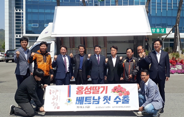 농협중앙회 홍성군지부(지부장 김영훈)는 지난 3일 홍성군농업기술센터에서 ‘아리향 베트남 수출 기념 선전식’을 진행했다.<사진>