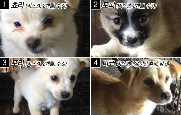 쵸리는 어미와 함께 좁은 보호소 철장에서 어린 시절을 보내고 있습니다. 좁은 철장에서 쵸리는 엄마 젖을 빠는 일 밖엔 할 게 없답니다. 말티즈 피가 섞인 듯 예쁜 얼굴을 지녔습니다.