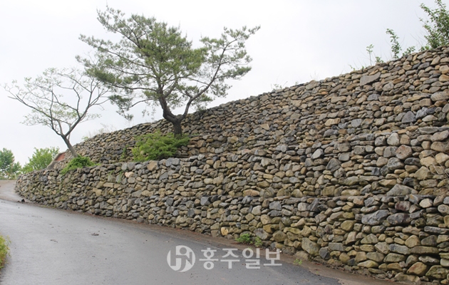 돌담 축조방식 하부에 폭이 큰 지대석 두 줄, 위로 규격이 작은 돌 사용