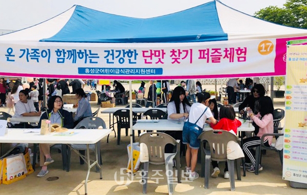 홍성군어린이급식관리지원센터(센터장 전예숙)는 지난 4일 개최된 ‘홍성 어린이 큰잔치’ 행사에 참여해 관내 어린이들을 대상으로 건강한 단맛 찾기 퍼즐체험 부스를 운영했다.<사진>